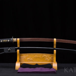 Bokken Holz Katana Das traditionelle Bokken Katana "Hana no Ken" sieht aus wie ein echtes Katana, hat jedoch eine robuste Klinge aus widerstandsfähigem Bahia-Rosenholz. Dank der Holzklinge eignet sich das schöne Bokutō hervorragend für das Training der japanischen Kampfkünsten. Die Saya (Scheide) ist aus Hartholz gefertigt und wird schwarz lackiert. Der Griff wird klassisch mit imitierter Rochenhaut überzogen und mit Polyester-Seide eng umwickelt.Die hochwertige Verarbeitung und die detailgetreue Optik mit einer echten Tsuba, Griffdekoration, einer Saya mit japanischer Dekoration, machen dieses Bokken Trainings Katana zu einem echten Highlight unter den Trainings Schwertern. „Handele nicht nach den traditionellen Überzeugungen.“(Yamamoto Tsunetomo) Eigenschaften Handgefertigt nach traditioneller japanischer Art: Ja Tsuka (Griff): Hartholz mit künstlicher Rochenhaut Tsuba (Stichblatt): Zinklegierung Fuchi (Griffzwinge): Zinklegierung Kashira (Abschlusskappe): Zinklegierung Menuki (Griffdekoration): Zinklegierung Ito (Griffband): eng umwickelt mit Polyester Saya (Scheide): Hartholz, lackiert Sageo (Schwertscheidenband): eng umwickelt mit Polyester Gesamtlänge: 103 cm Klinge Material: hartes Palisanderholz Bo-Hi (Blutrille) : Ja Klingenlänge: 71 cm Klingendicke: 7 mm Klingenbreite: 3,2 cm
