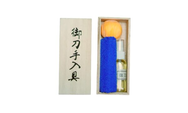 Pflege-Set für japanische Schwerter Bewahren Sie die Schönheit und Schärfe Ihres Katanas (oder Wakizashi) mit unserem Katana Pflegeset. Dieses umfassende Set enthält alles, was Sie benötigen, um Ihr Katana in bestem Zustand zu erhalten und seine Lebensdauer zu verlängern. Die perfekte Ergänzung für jeden Sammler oder Liebhaber japanischer Schwerter . Katana Pflegeset Inhalt: Holzbox : Eine elegante und praktische Aufbewahrungsbox für alle Pflegeartikel. Uchiko (Puderquaste) : Zum Entfernen von altem Öl und Verschönerung der Schwertoberfläche. Mekuginuki (Messinghammer) : Zum Lösen der Holzstücke im Griff und Zerlegen des Schwertes. Nuguigami (Reinigungspapier) : Spezielles, dickes japanisches Papier zum Entfernen von altem Öl und Reinigen des Uchiko-Puders. 2 Mekugi (Bambusstifte) : Zur Befestigung des Griffs an der Klinge. Hinweis für Schweizer Kunden: Aufgrund von Versandvorschriften für gefährliche Materialien enthält dieses Pflegeset kein Öl. Sie können jedoch alternative Öle verwenden oder das Pflege-Öl separat in einem anderen Shop erwerben. Alternativen:- Japanisches Kamelienöl- 3-in-1-Öl- Singer-Maschinenöl- Mineralöl- Notfalls kann auch WD-40 verwendet werden, dies trocknet jedoch schneller aus und riecht unangenehm. "Eine Klinge pflegen heißt, den Geist pflegen; das Schwert ist die Seele des Samurai, und seine Pflege spiegelt die Hingabe seines Besitzers wider." Katana Pflege und Wartung: Reinigung und Ölen der Klinge Nicht rostfreie Klingen sollten nach jedem Gebrauch gereinigt werden, idealerweise mit Spülmittel oder warmem Wasser. Trocknen Sie die Klinge gründlich und überziehen Sie sie mit einer dünnen Schicht Öl, wie z.B. japanischem Kamelienöl, das nicht verklebt und die Oberfläche nicht angreift. Wartung des Katana Die regelmäßige Wartung eines Katanas ist wichtig, um Korrosion und Schäden an der Klinge zu vermeiden. Verwenden Sie das Uchiko und Nuguigami (Puderquaste und Reinigungspapier), um die Klinge von altem Öl zu befreien. Bei Bedarf zerlegen Sie das Katana mit dem Mekuginuki (Messinghammer), um eine gründliche Reinigung und Inspektion der Einzelteile zu ermöglichen. Weitere Informationen: Ausführliche Anleitung: Katana Pflege und Wartung