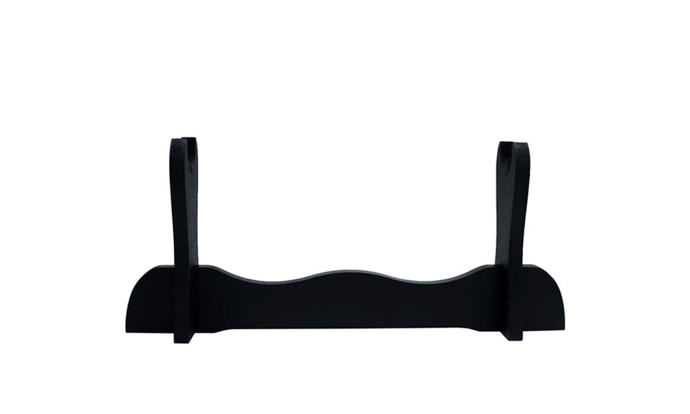 Preiswerter, schwarzer Schwertständer zur Präsentation eines Ihrer Katanas. unauffälliges und simples Design Tisch-Ständer für ein Katana Schwert-Ständer aus Holz, schwarz lackiert einfaches Zusammenbauen, 3 teilig