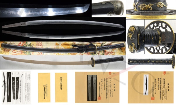 Osafune Sukesada – Meisterstück aus der späten Muromachi-Zeit (1577) Dieses historische Nihonto wurde im Jahr 1577 (5. Jahr der Tenshō-Ära) vom berühmten Schwertschmied Osafune Sukesada gefertigt – ein Meister der legendären Bizen-Schule, deren Klingen für ihre Eleganz und Schneidfähigkeit berühmt sind.Die Klinge trägt die originale Signatur (Mei) und wurde von der NBTHK (Nihon Bijutsu Token Hozon Kyokai) als Hozon Token zertifiziert – ebenso wie die Koshirae , was ihre kunstvolle Gestaltung und geschichtliche Relevanz unterstreicht. Aufbau des Sets – Zwei Schwerter in einem Paket Dieses Nihonto-Set beinhaltet zwei montierte Schwerter – jedes mit einer klaren Funktion: Die originale antike Klinge (Tamahagane, NBTHK-zertifiziert)→ Montiert in einer klassischen Shirasaya (glatte Holzscheide & Holzgriff) – zum Schutz und zur musealen Aufbewahrung Ein Präsentationsschwert mit kompletter Koshirae → Komplette Montur mit Tsuba, Fuchi, Kashira, Menuki, Ito, Samegawa und Saya, montiert auf einer Holzklinge→ Ideal für die ästhetische Präsentation des Schwertes im voll montierten Zustand, ohne die Originalklinge zu gefährden Dieses zertifizierte Nihonto Set ist ein einmaliges Sammlerstück. Es wird weltweit nur ein einziges Mal in dieser Form verkauft – und nur bei KATANZO. KATANZO KATANA CUT Technische Details Klingenform : Shinogi-zukuri, Iori-mune, Ubu Nakago Hamon : Midare (ungleichmäßiges Wellenmuster) Klingenlänge : ca. 66,8 cm Krümmung : ca. 1,7 cm Schmied : Osafune Sukesada (signiert) Epoche : Tenshō 5 / 1577 (späte Muromachi-Zeit) Region : Bizen (Provinz Okayama) Lieferumfang Originale Klinge in Shirasaya (Holzmontierung) Koshirae montiert auf Holzklinge NBTHK Hozon-Zertifikat für die Klinge (Original) NBTHK Hozon-Zertifikat für die Koshirae (Original) Kopie der japanischen Registrierungskarte Traditionelle Schwerttasche Wir übernehmen den gesamten Export und Import (inklusive Verzollung, Dokumentation und versichertem Versand an deine Haustür) KATANZO KATANA CUT KATANZO KATANA CUT Zertifizierung & Herkunft Die NBTHK (Nihon Bijutsu Token Hozon Kyokai) hat sowohl die antike Klinge als auch die komplette Montur (Koshirae) umfassend geprüft und mit dem Hozon-Zertifikat ausgezeichnet: NBTHK Hozon Token für die Klinge – ausgestellt am 28. März 1996 (Heisei 8) NBTHK Hozon Tosogu für die Koshirae – ausgestellt am 23. April 1996 (Heisei 8) Beide Zertifikate bestätigen den außergewöhnlichen kulturellen und sammlerischen Wert dieses Nihonto.Das Originalzertifikat für Klinge und Montur wird mitgeliefert.Die offizielle japanische Registrierungskarte verbleibt im Ursprungsland – eine Kopie wird beigelegt . Zertifikate zum Nihonto Osafune Sukesada KATANZO KATANA CUT Exklusiv bei KATANZO Dieses Nihonto ist exklusiv über KATANZO erhältlich. Wir übernehmen den kompletten Import, alle rechtlichen Formalitäten und den sicheren Versand aus Deutschland. Kein Aufwand für dich – du erhältst dein Sammlerschwert zollfrei, legal und vollständig dokumentiert. Dieses Schwert ist ein historisches Unikat . Es existiert weltweit nur einmal in dieser Form.